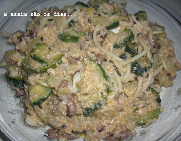 Foi uma refeição feita para aproveitar vários alimentos que estavam no frigorífico, quase em "fim" de vida últil. E até resultou bem.